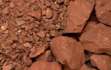 Dominik Cumhuriyeti'ndeki Cabo Rojo'da yüklenen ve işlenmek üzere başka bir yere nakledilen boksit; 2007Hindistan'ın Nalconagar kentindeki National Aluminium Company'de 175 °C (347 °F) sıcaklıktaki sodyum hidroksit çözeltisiyle basınç altında yıkanarak sindirilen boksit.